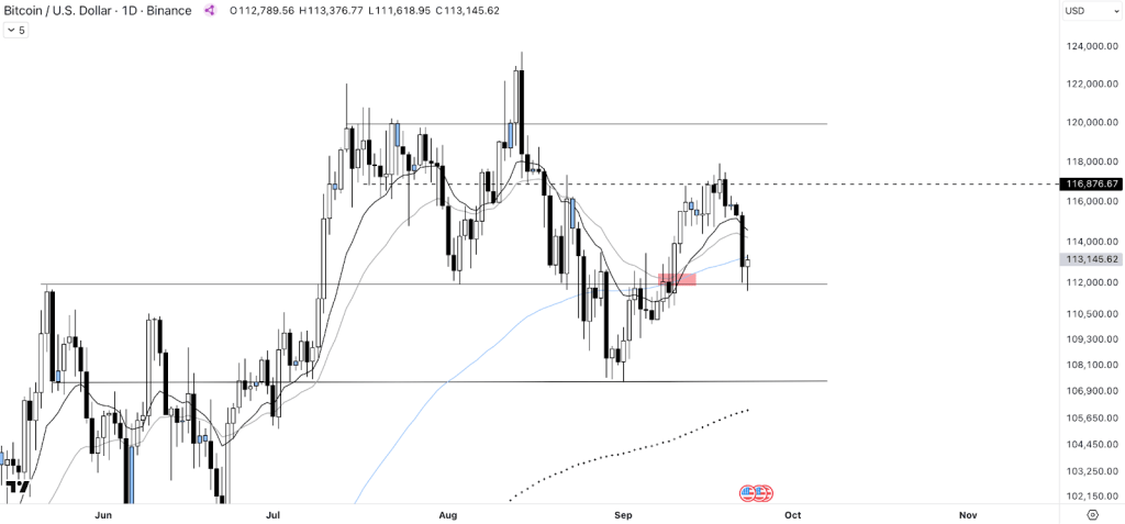À l’approche de la clôture mensuelle, la situation est à surveiller attentivement. Cela déterminera très probablement la dynamique pour le mois d’octobre avec, idéalement, une tendance haussière en défendant la MA100 1D.