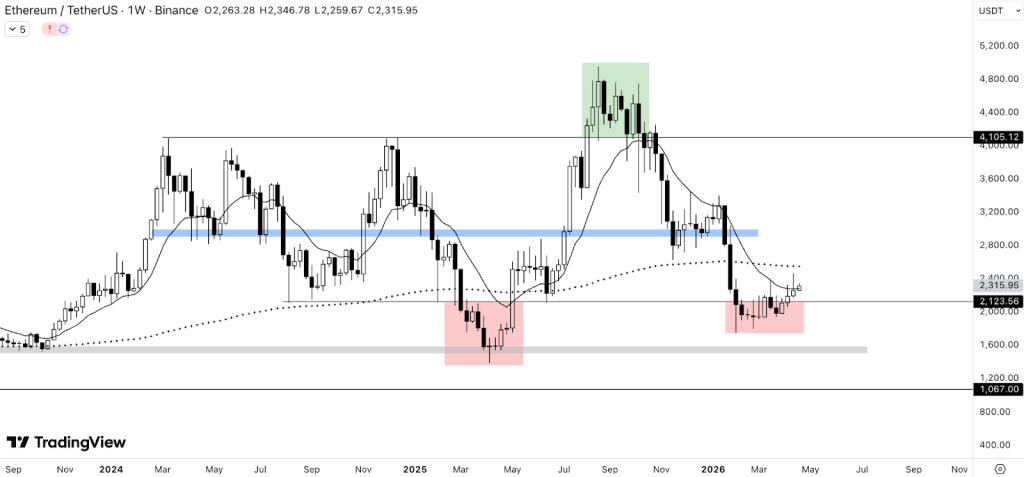 Le graphique d’ETH face au dollar confirme que la sortie de range était une déviation (point évoqué récemment lors de notre dernière analyse de la crypto). En retournant à plus de 2 150 dollars, rien n’est joué, au contraire. Ethereum reste sous-évalué par rapport à ses fondamentaux.