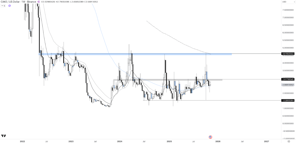Toutefois, tant que BTC et ETH continueront de céder à leurs supports, les probabilités d’un rebond pour le CAKE s’éloignent, bien qu’une surperformance solitaire n’est pas à écarter, comme cela fut le cas pour des actifs comme HYPE, XRP ou ASTER.